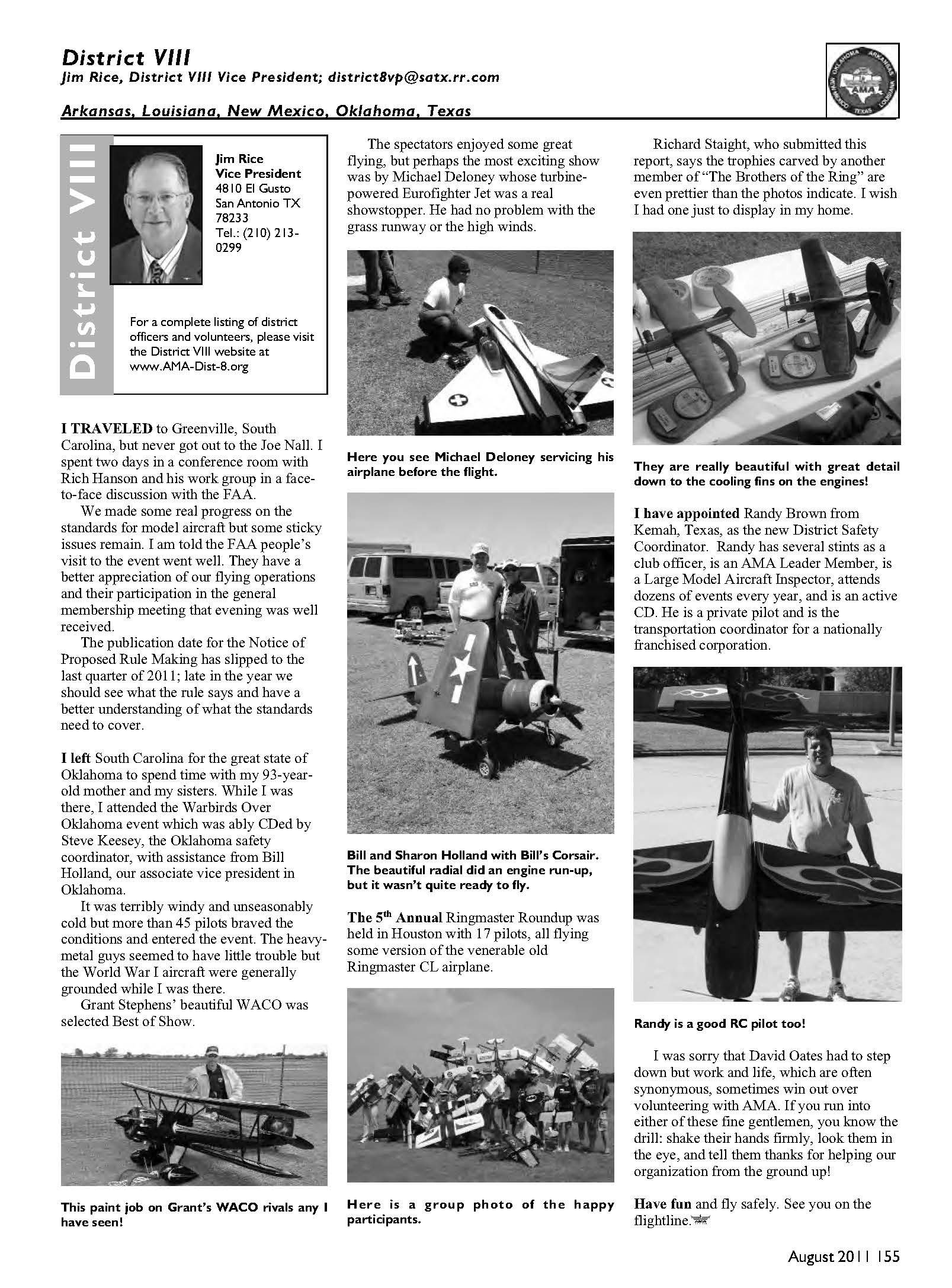 Jim Rice, District VIII Vice President; district8vp@satx.rr.com