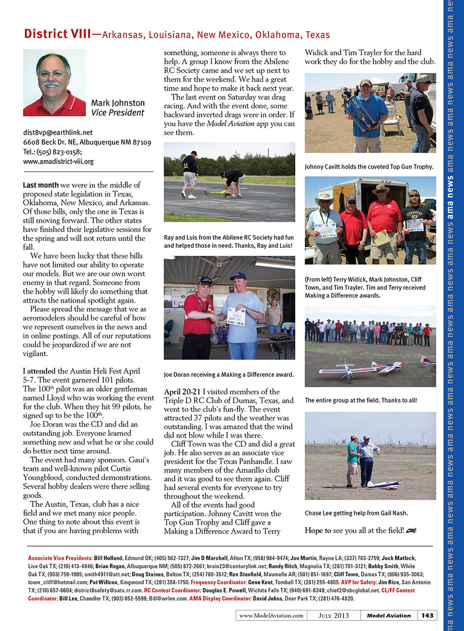 TX; (210) 657-6604; district8safety@satx.rr.com. RC Contest Coordinator: Douglas E. Powell, Wichita Falls TX; (940) 691-8348; chief2@sbcglobal.net. CL/FF Contest