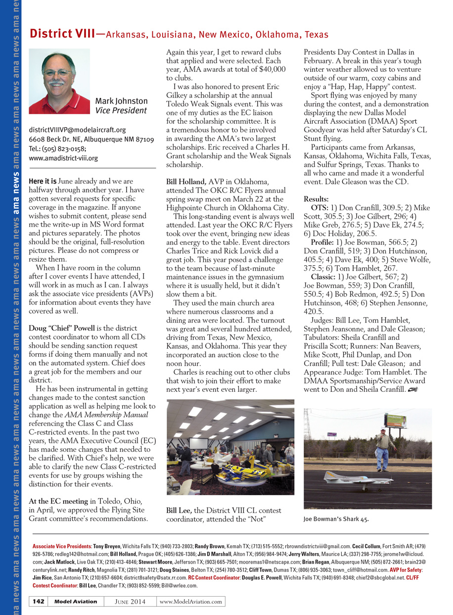 He has been instrumental in getting changes made to the contest sanction application as well as helping me look to change the AMA Membership Manual referencing the Class C and Class C-restricted events. In the past two years, the AMA Executive Council (EC) has made some changes that needed to be better clarified. With Chief’s help, we were able to clarify the new Class C-restricted events for use by groups wishing the distinction for their event.