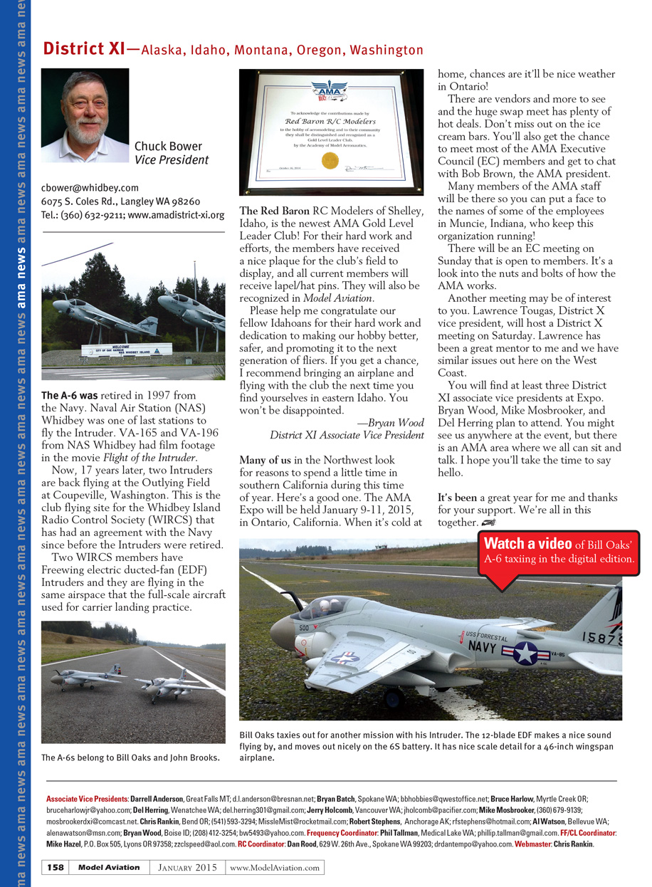 Now, 17 years later, two Intruders are back flying at the Outlying Field at Coupeville, Washington. This is the club flying site for the Whidbey Island Radio Control Society (WIRCS) that has had an agreement with the Navy since before the Intruders were retired.