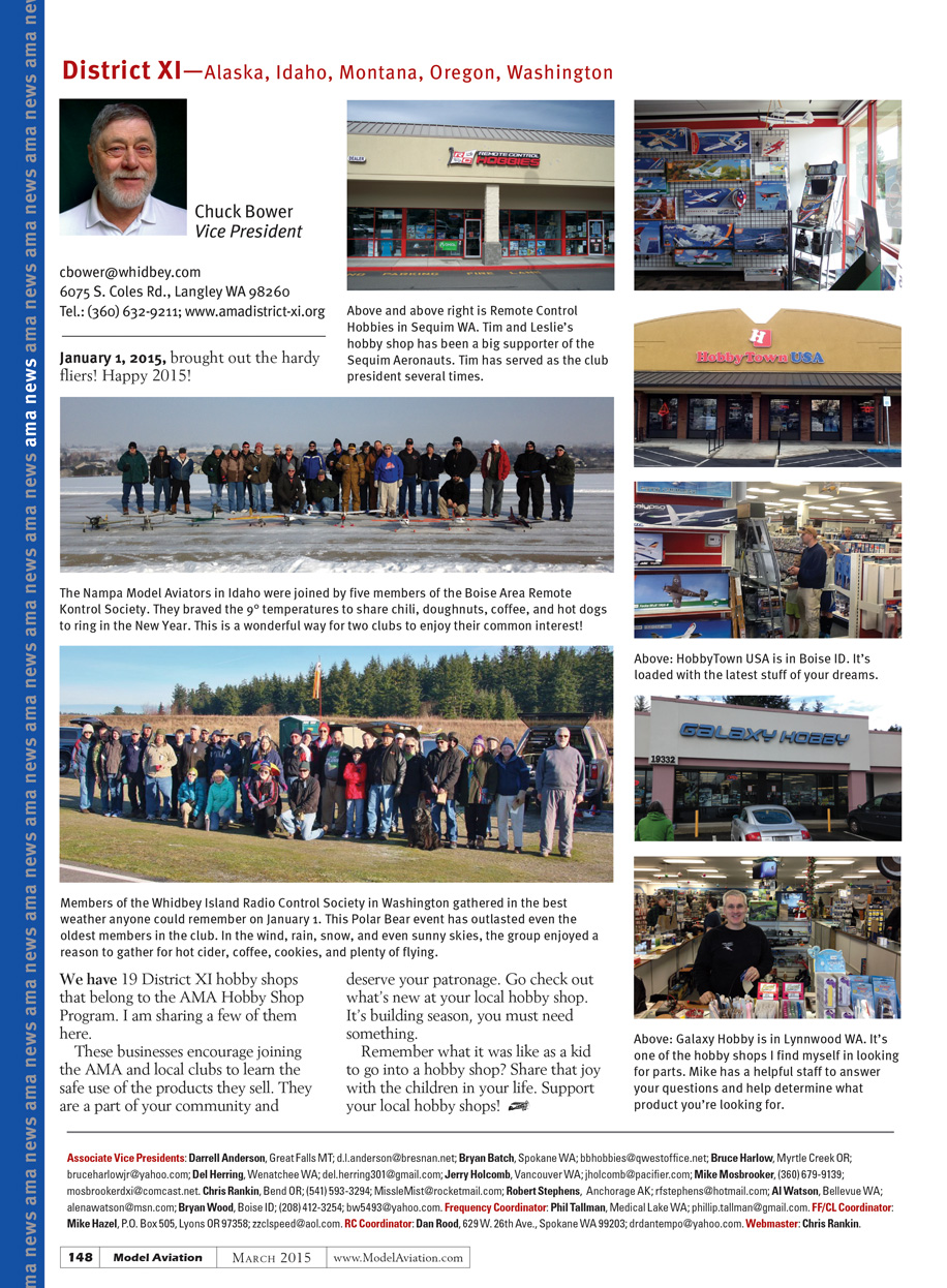 Here are several of the 19 District XI hobby shops that belong to the AMA Hobby Shop Program. These shops encourage joining the AMA and local clubs to learn the safe use of the products they sell. These shops are a part of your community and deserve your patronage. Go check out what’s new at your hobby shop. It’s building season, you must need something.