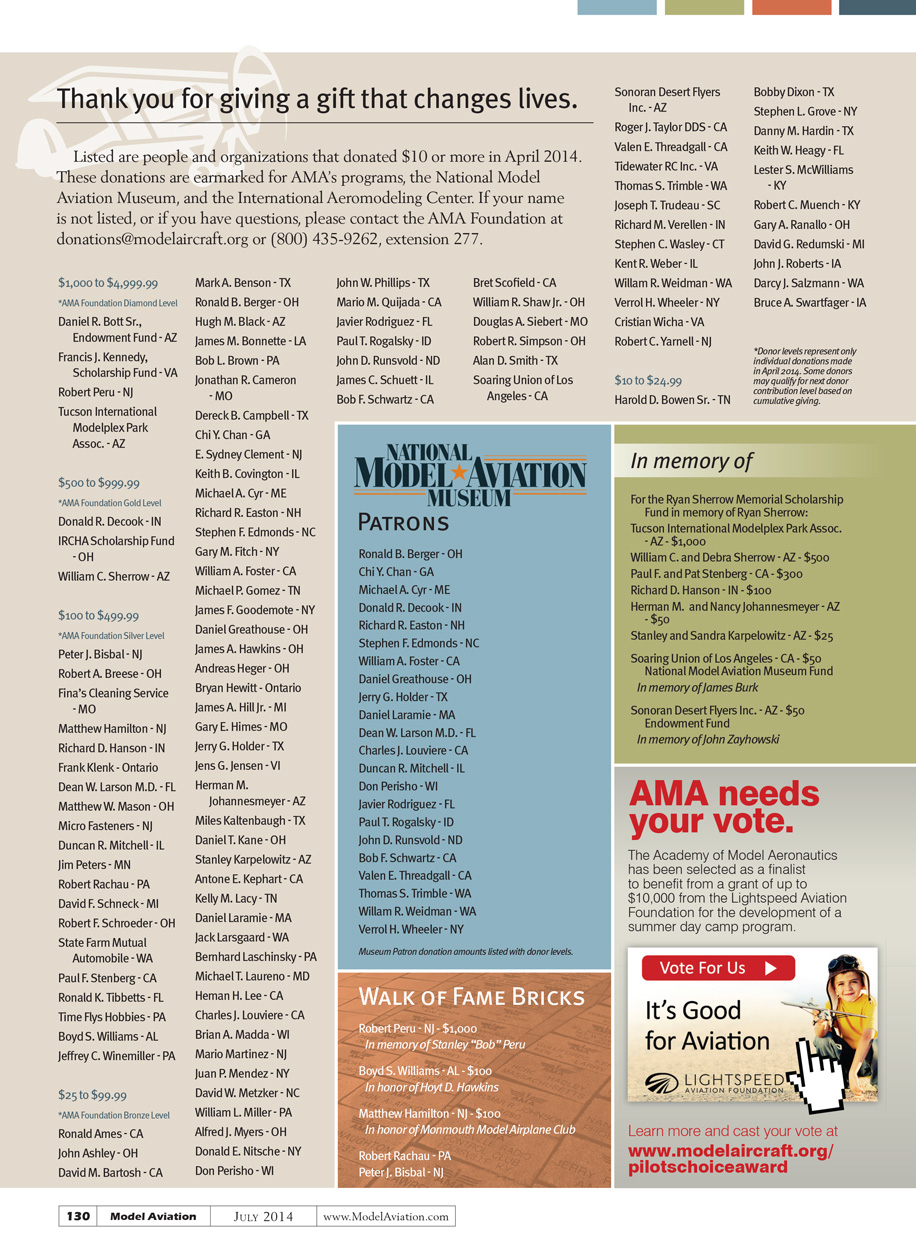 donations@modelaircraft.org or (800) 435-9262, extension 277.