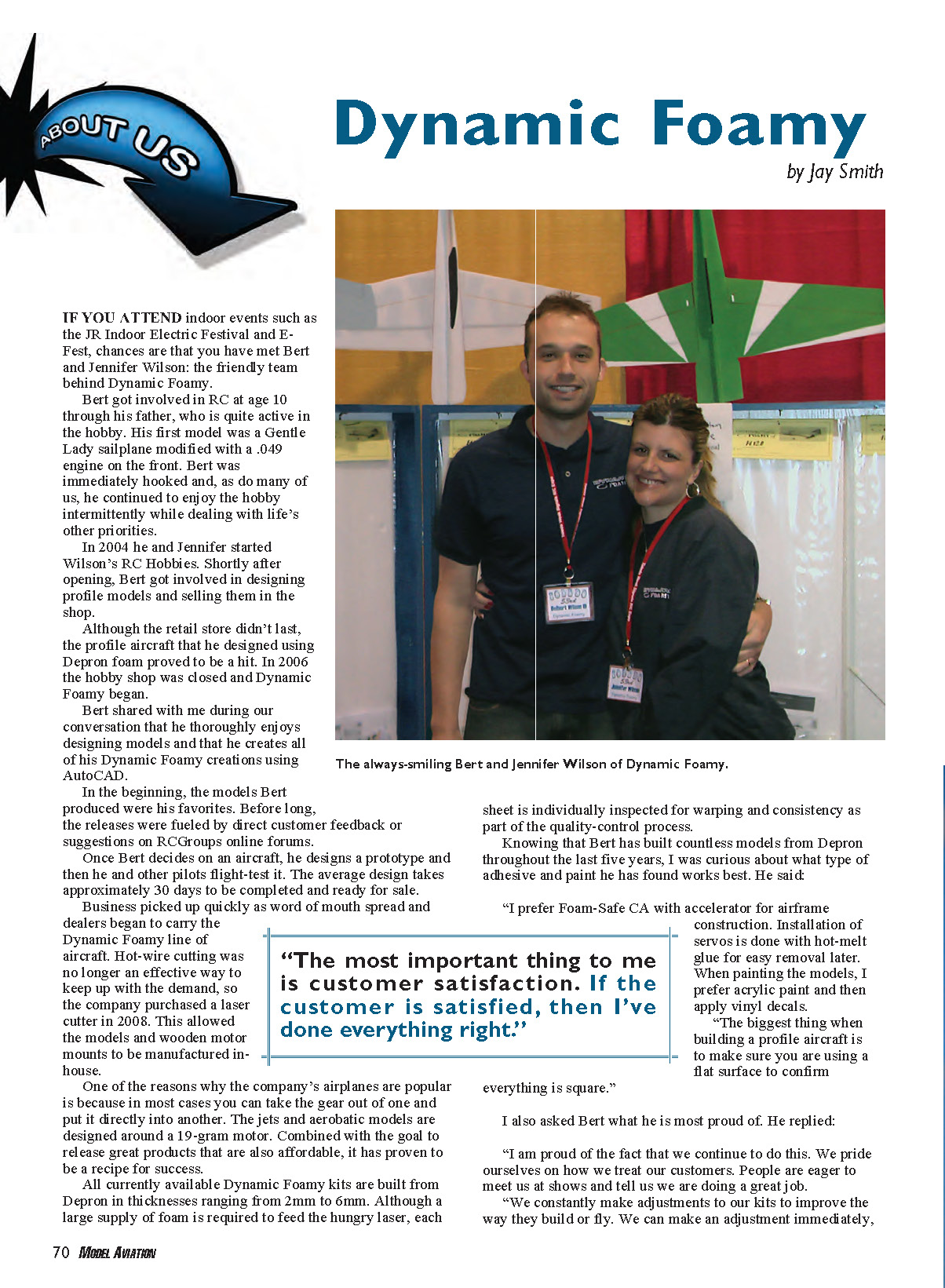 What is the largest aircraft that Dynamic Foamy sells? (You can find the answer on