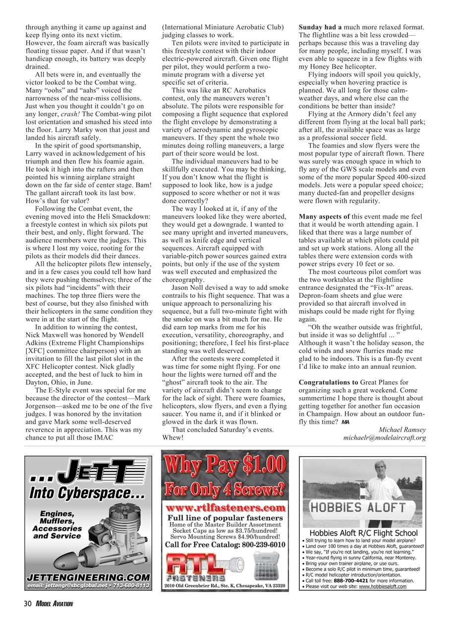 An array of aircraft took to the air in the University of Illinois at Urbana-Champaign Armory track-and-field facility while winter’s wrath roared outside