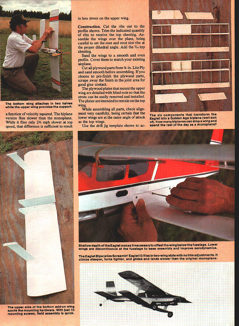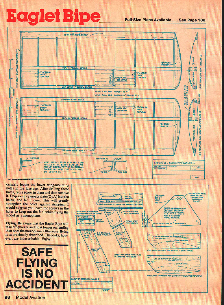 stalled now read ass Above tpd monoplan airtr ortioned aerody scaledto classic cabin biplanes 1930s originals must imething modifica off board pod design iching lower wings e deep enough aesired gap wings fuselage sides would have cumber uccuded make wings dis fuselage mount n nbo denend upon top *rength can S versic [IQUE y ii dberg modifi gn bipla Lgs iem re w ush Laeotc ches Ii mvldeunil pi quared Iincbeini morne slow ientteniph Eaglet Bipe 16PAt 1 Full-Size Plans Available. 8. Page 188 II-Ie3iu lijiV_____ WN7TP V4A Y4$ 1 i J2 - IF I-w -1 -1 -7 rfCf WNb AM pa EADWT Z WIJVfr ftAN w AMIN 2 I*Afl U 0W4C IHmwALi 1W WYI me&Y V4c MV L0 SU 1111L*FV 1111I 1IMJE mci - fI 1407 IN6TiL1L PT P4 ANmu1,SOT APAeSrff 1W 7JT LDV AT A14 AN5LE NVAL rome NR4I. ANG4J O 714ff T 714N yur a7I4L curately locate lower wing-mounting boles fuselage After drilling holes run screw remove Drip some cyanoacrylate CyA boles let cure will greatly strQngthen holes against stripping would suggest leave screws boles keep out fuel flying model monoplane FIyIu aware Eaglet Ripe wrn take off quicker float longer landing does monoplane Otherwise flying previously described looks ever indescribable Enjoy SAFE FLYING ISNO ACCIDENT EA6LET2 CeAMNEAL&T2Z 98 Model Aviation 54 0 0 j am PU1MM F 11OViJuI -EWMKWTRA7 aaMw4uwrZ4VuuRl~15TD 5JNPMW F4-4~aT 8OTWf u WM ka3TaJew0vuepwi-. SM ___K 0uavr WW PT 30r P sd4*rZ CIWww #453 IA4KS WJfl AinMag IN WU iT ____ IC __ /_____ wm r summ aT~uIuU