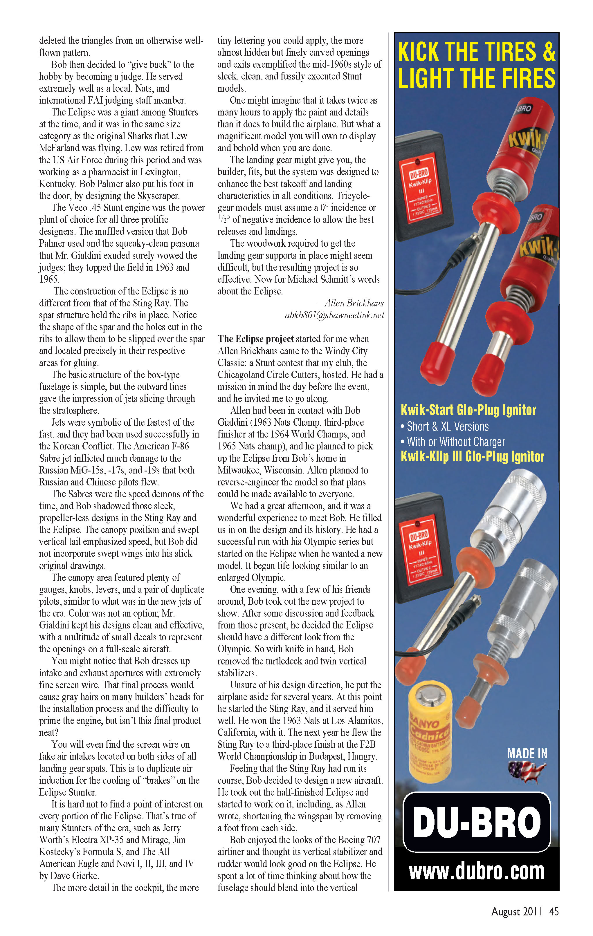 The Eclipse was to receive a “Lee” tuned Veco .45 engine for