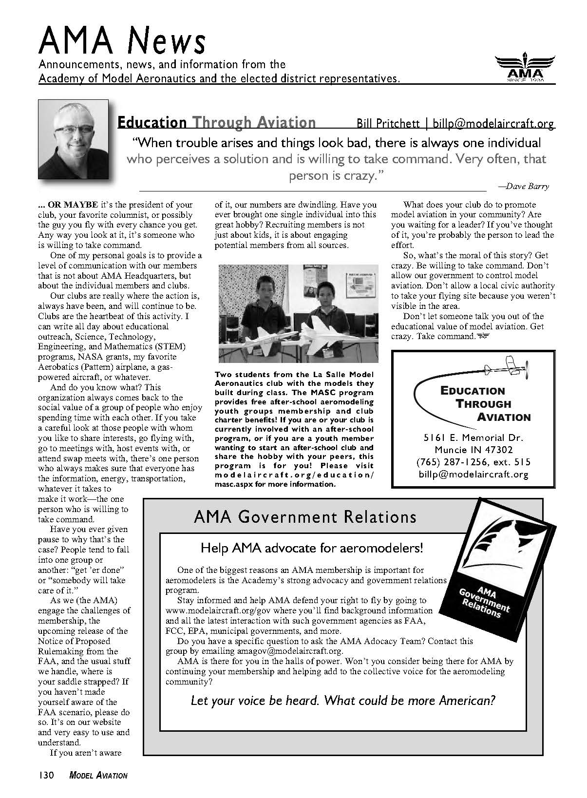 Education Through Aviation Bill Pritchett | billp@modelaircraft.org