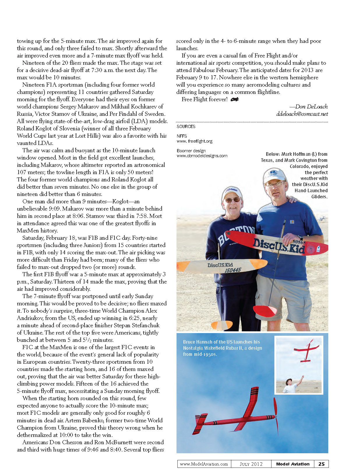 and FAI-style Catapult Glider.