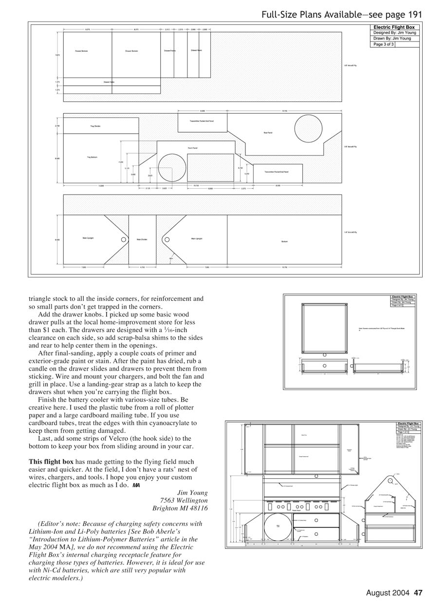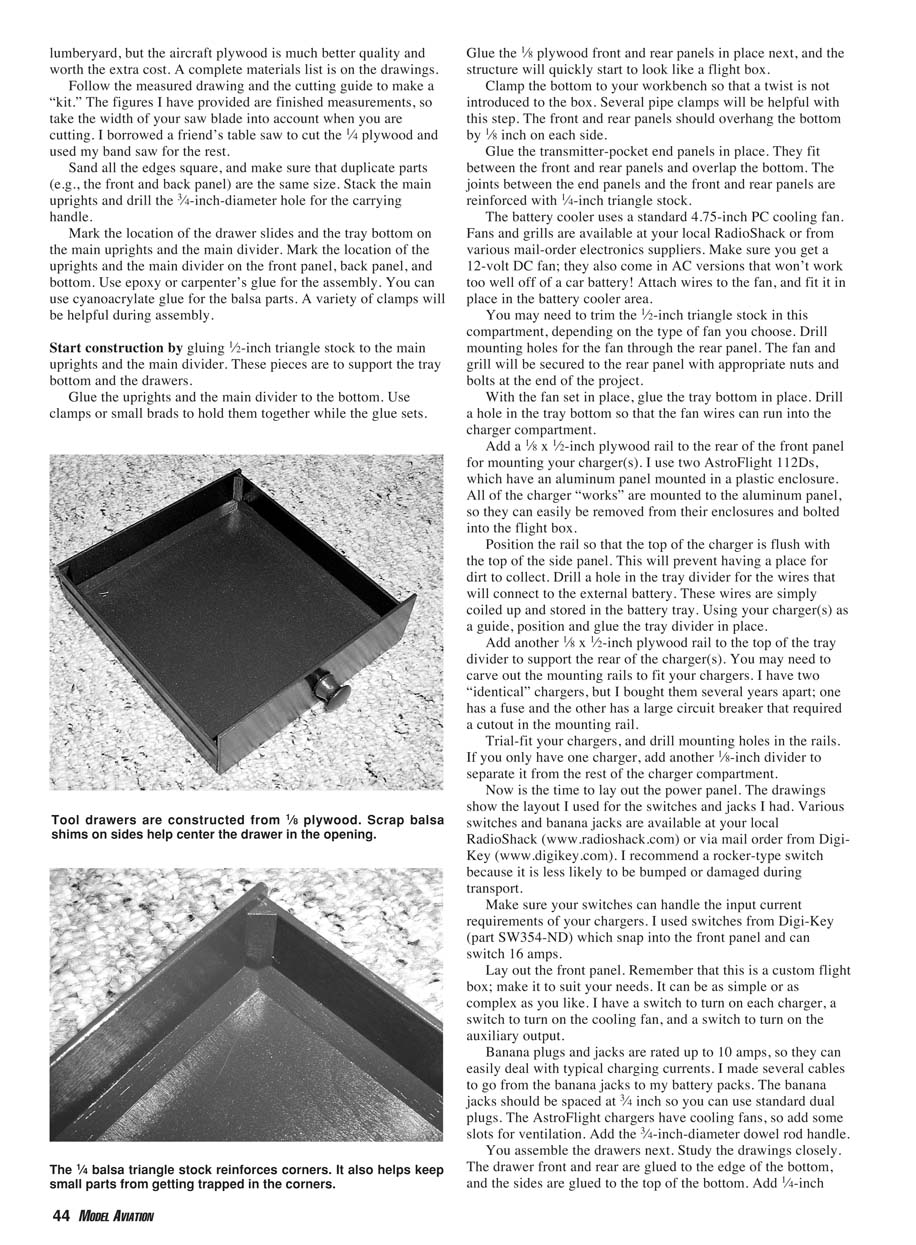 Tool drawers are constructed from 1⁄8 plywood. Scrap balsa