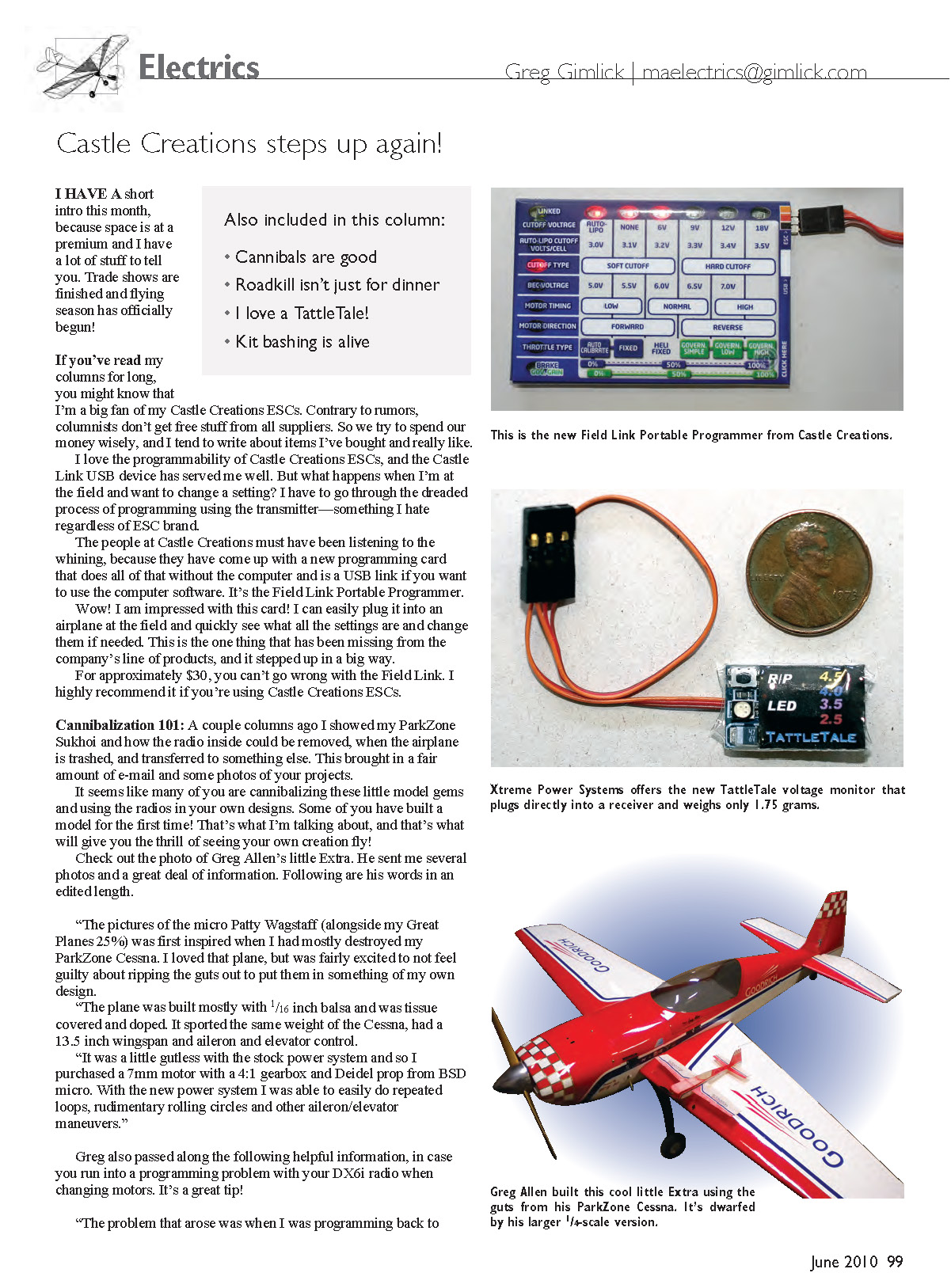 Check out the photo of Greg Allen’s little Extra. He sent me several