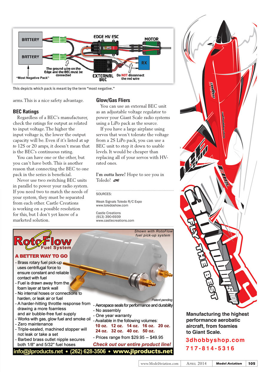 You’ve heard the term, and you’ve probably used one whether you knew it or not. Battery Eliminator Circuits (BECs) are small devices that eliminate the need for a receiver and servo battery pack. They take higher voltage from the motor batteries and drop it to a level suitable for receivers and servos.