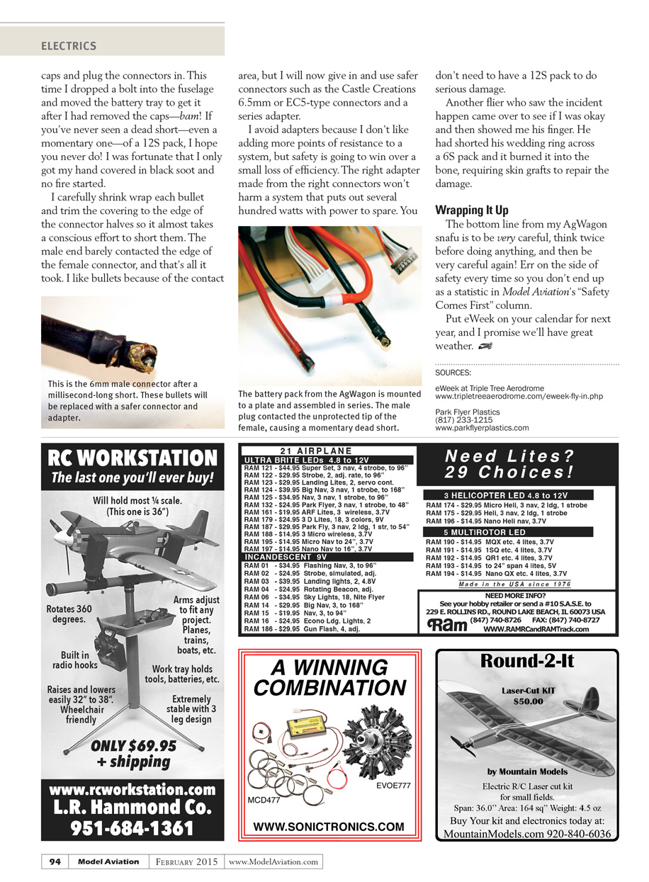 The bottom line from my AgWagon snafu is to be very careful, think twice before doing anything, and then be very careful again! Err on the side of safety every time so you don’t end up in Model Aviation’s “Safety Comes First” column as a statistic.