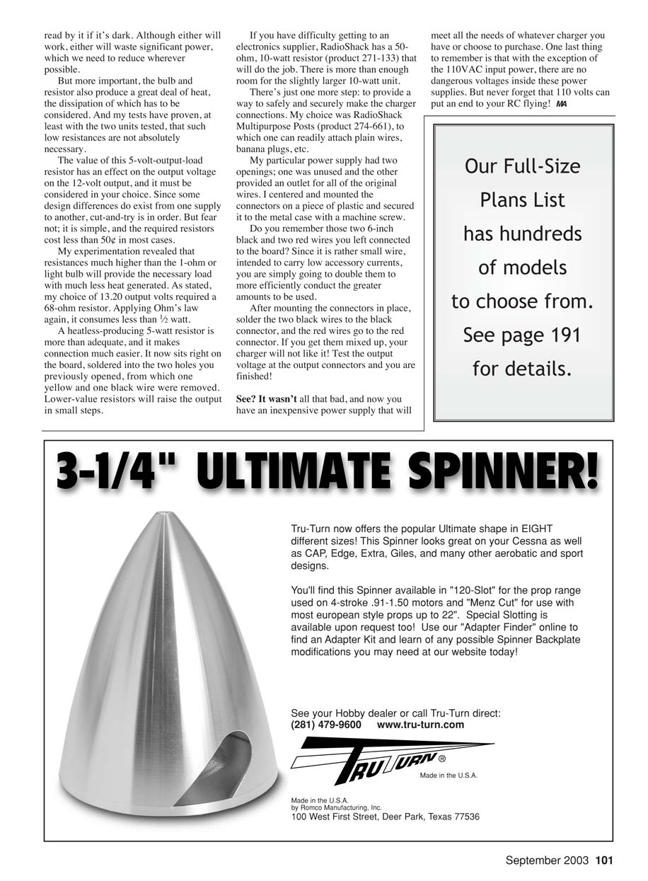 See your Hobby dealer or call Tru-Turn direct: