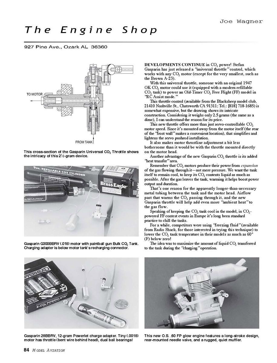 CO2 tank) to power an Old-Timer CO2 Free Flight (FF) model in