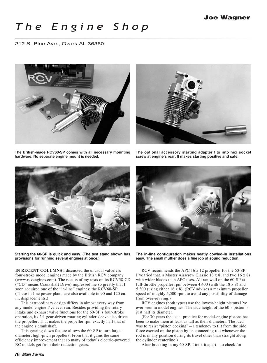 (www.rcvengines.com). The results of my tests on its RCV58-CD