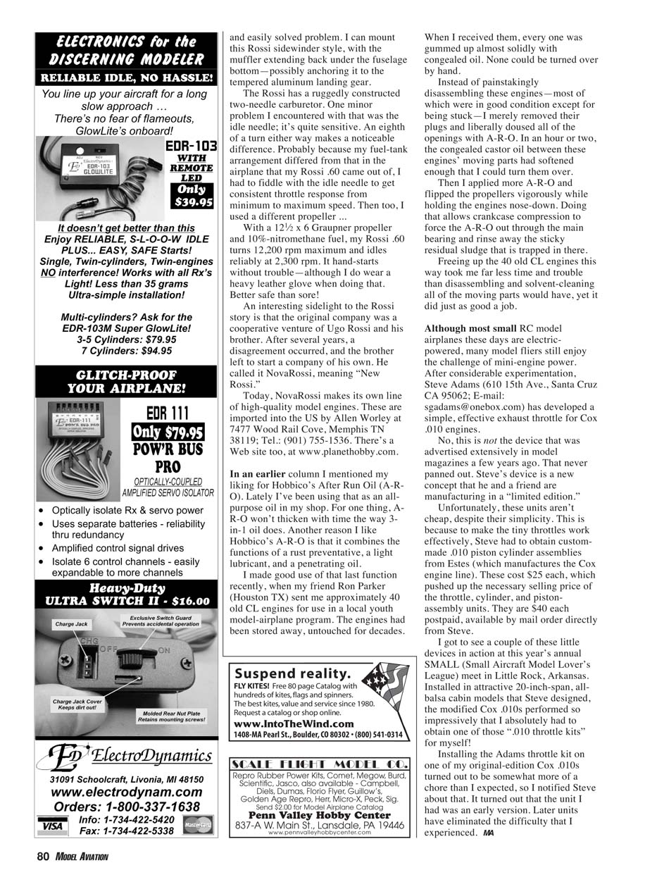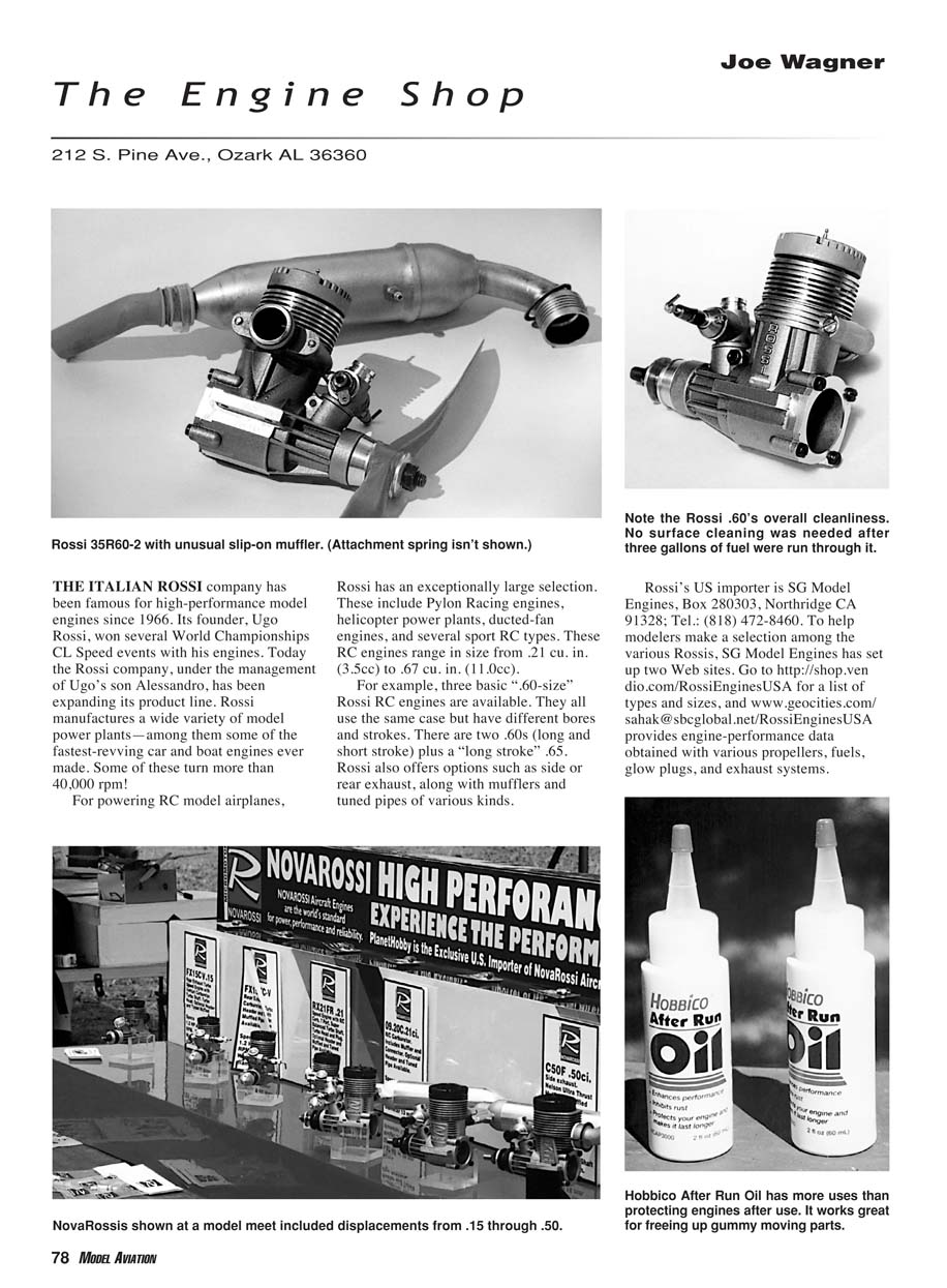 NovaRossis shown at a model meet included displacements from .15 through .50. for freeing up gummy moving parts.