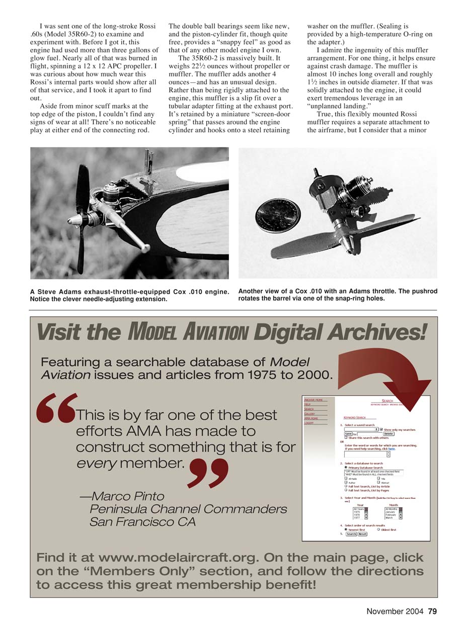 A Steve Adams exhaust-throttle-equipped Cox .010 engine.