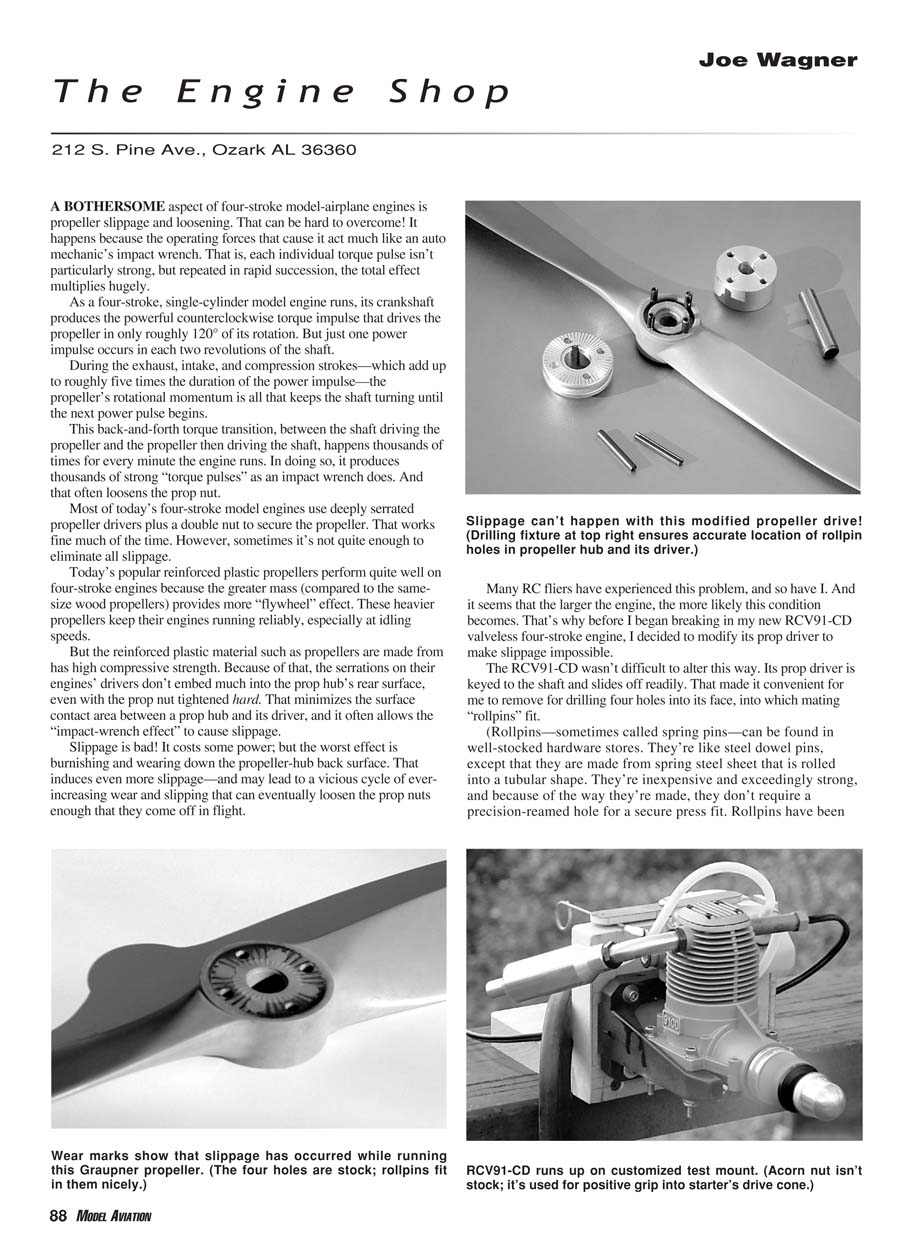 crankshaft. To align my drill guide on the prop hub, I used a 5⁄16-inch