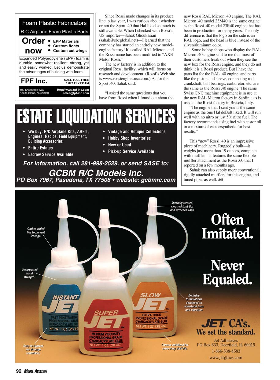 new Rossi RAL Micron .40 engine. The RAL