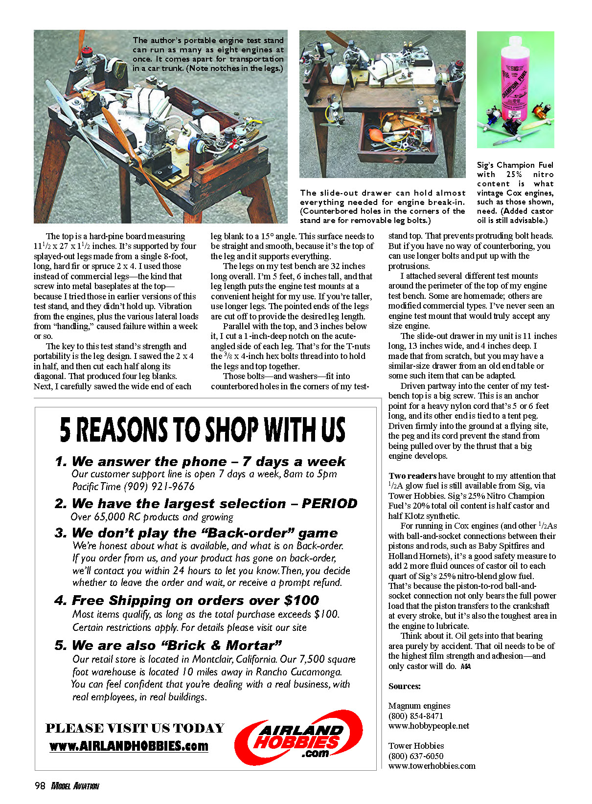 test bench for breaking in model engines. It