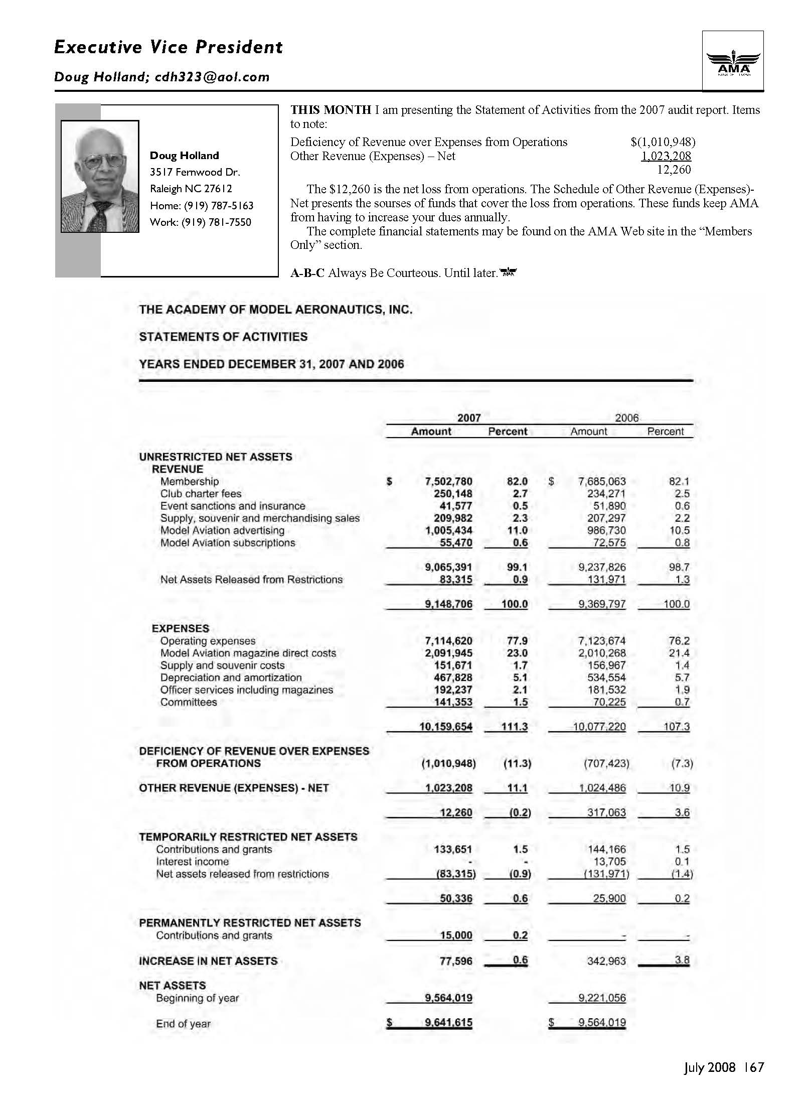 THIS MONTH I am presenting the Statement of Activities from the 2007 audit report. Items