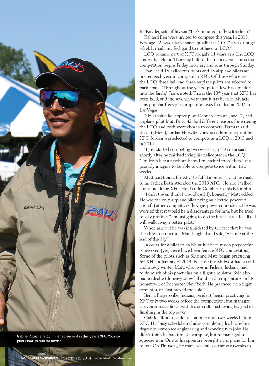 Seven-time XFC helicopter competitor Kyle Stacy said at the 2014 competition, which was held June 13-15, that what he likes most is seeing his friends. “I just get to hang out with everyone. Flying is secondary,” the 18-year-old said.