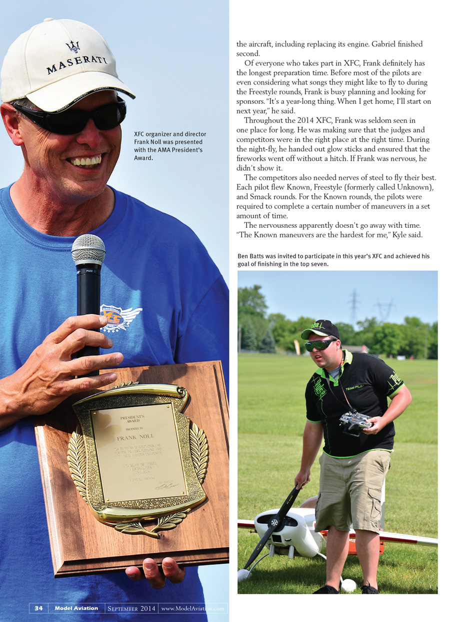 Frank said 15 helicopter pilots and 15 airplane pilots are invited each year to compete in XFC. Of those who enter the LCQ, three heli and three airplane pilots are selected to participate. “Throughout the years, quite a few have made it into the finals,” Frank noted. This is the 13th year that XFC has been held, and the seventh year that it has been in Muncie. This popular freestyle competition was founded in 2002 in Las Vegas.