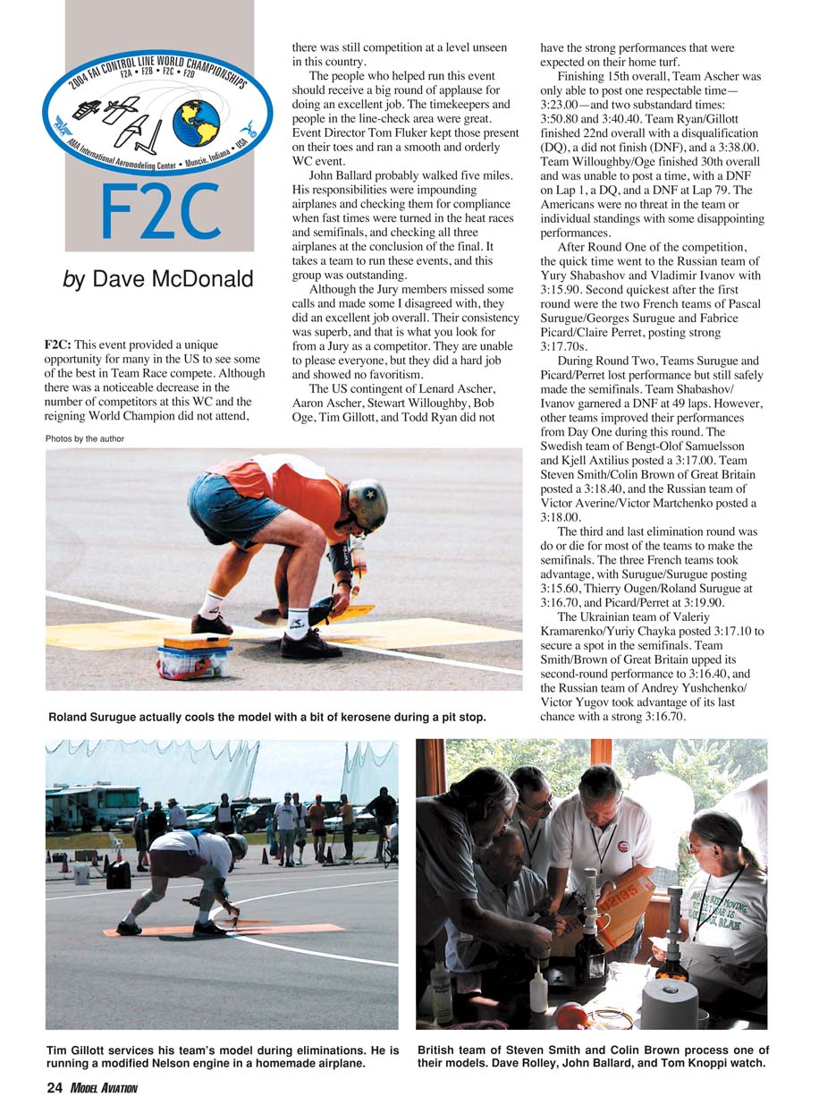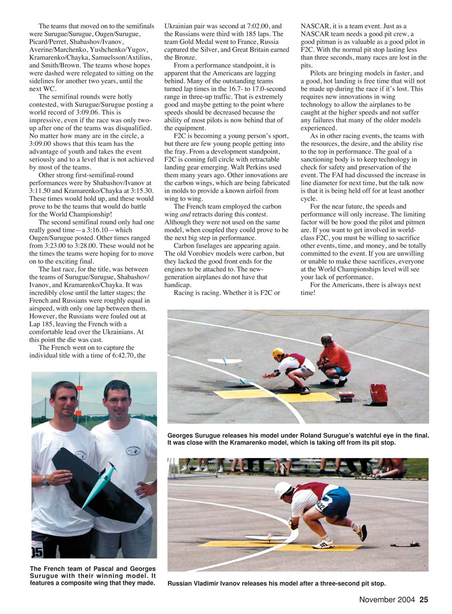 features a composite wing that they made. Russian Vladimir Ivanov releases his model after a three-second pit stop.