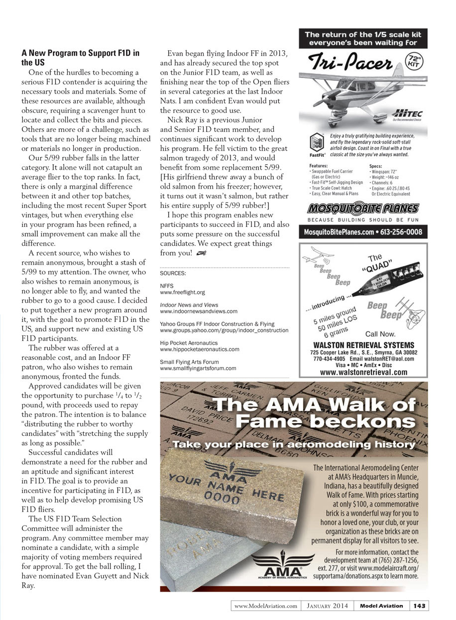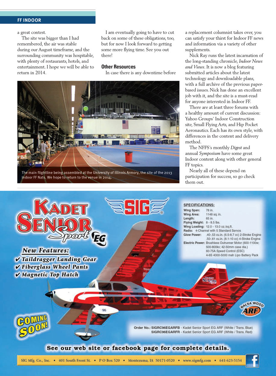 I am looking forward to getting back to what I love most about Indoor FF: flying! It has taken a while, but I’ve also communicated most of what I had in my head. People I’ve chatted with are surprised to hear that I’ve been writing the column for nearly 10 years.