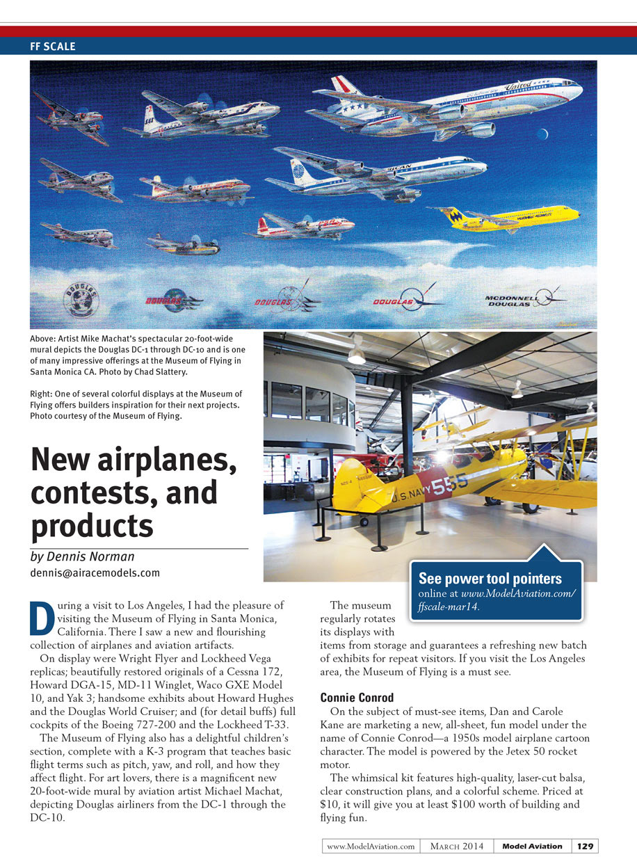 On the subject of must-see items, Dan and Carole Kane are marketing a new, all-sheet, fun model under the name of Connie Conrod—a 1950s model airplane cartoon character. The model is powered by the Jetex 50 rocket motor.