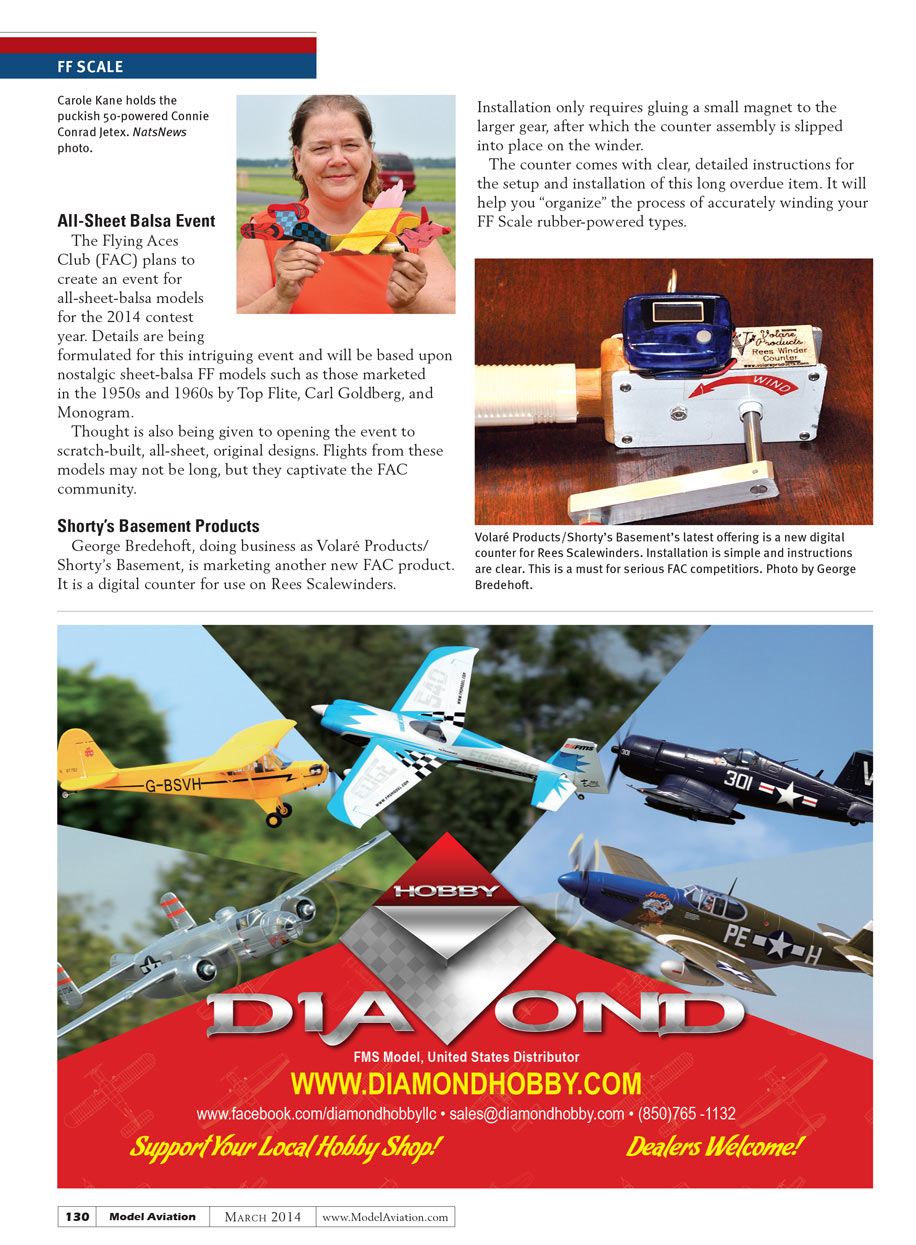The Flying Aces Club (FAC) plans to create an event for all-sheet-balsa models for the 2014 contest year. Details are being formulated for this intriguing event and will be based upon nostalgic sheet-balsa FF models such as those marketed in the 1950s and 1960s by Top Flite, Carl Goldberg, and Monogram.