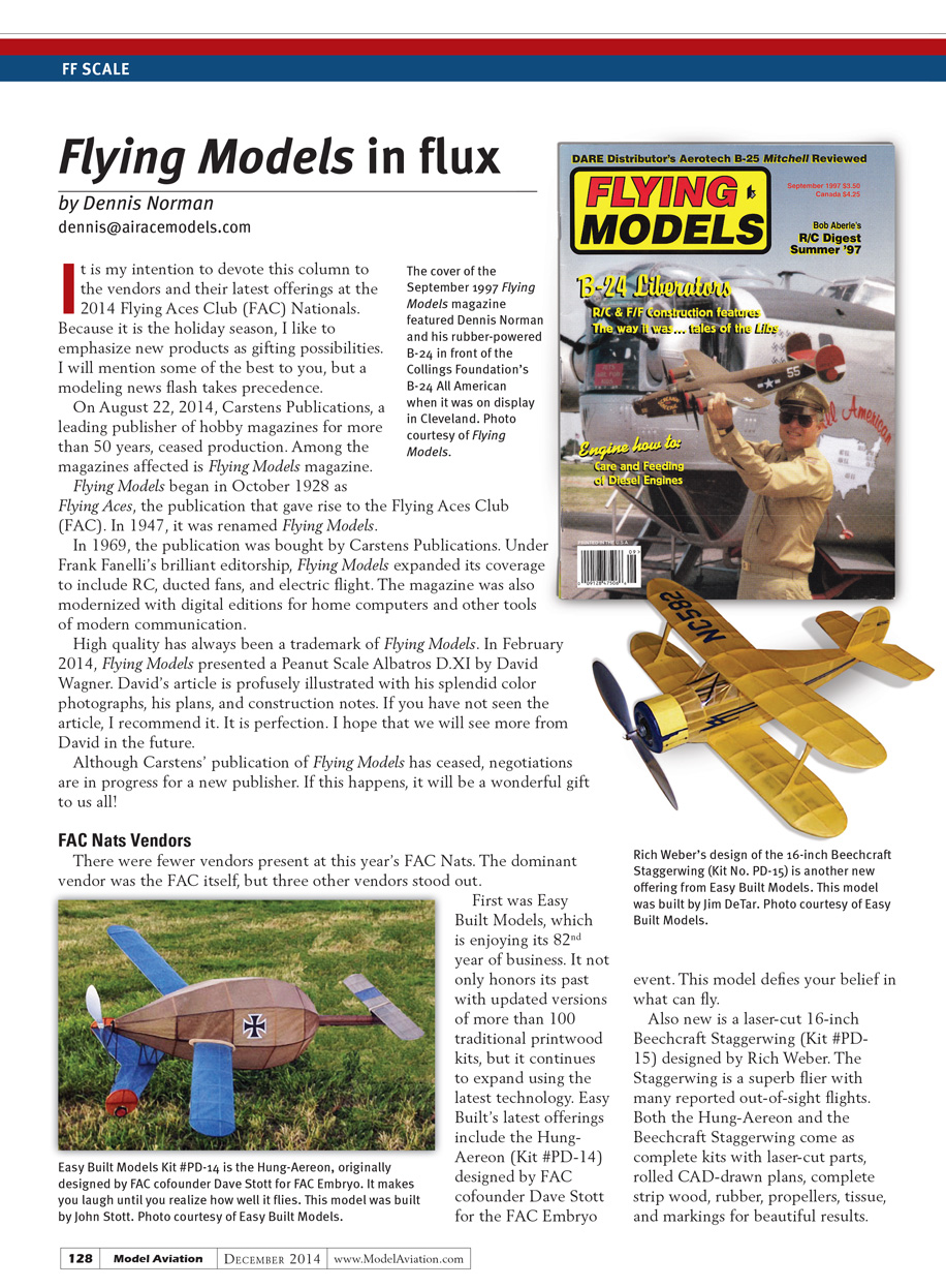 Although Carstens’ publication of Flying Models has ceased, negotiations are in progress for a new publisher. If this happens, it will be a wonderful gift to us all!