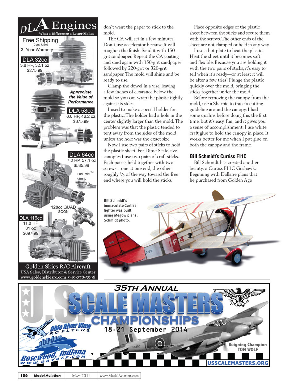 Sooner or later you will want to build a model from scratch and will need to mold its canopy. Many years ago I made a small vacuum former that did the job. However, for the last five years I have been plunge molding my canopies because it’s simpler and faster.