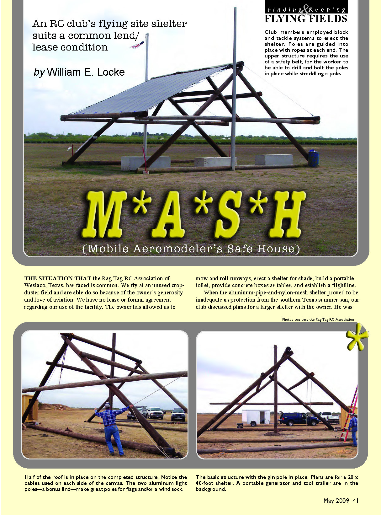 mow and roll runways, erect a shelter for shade, build a portable