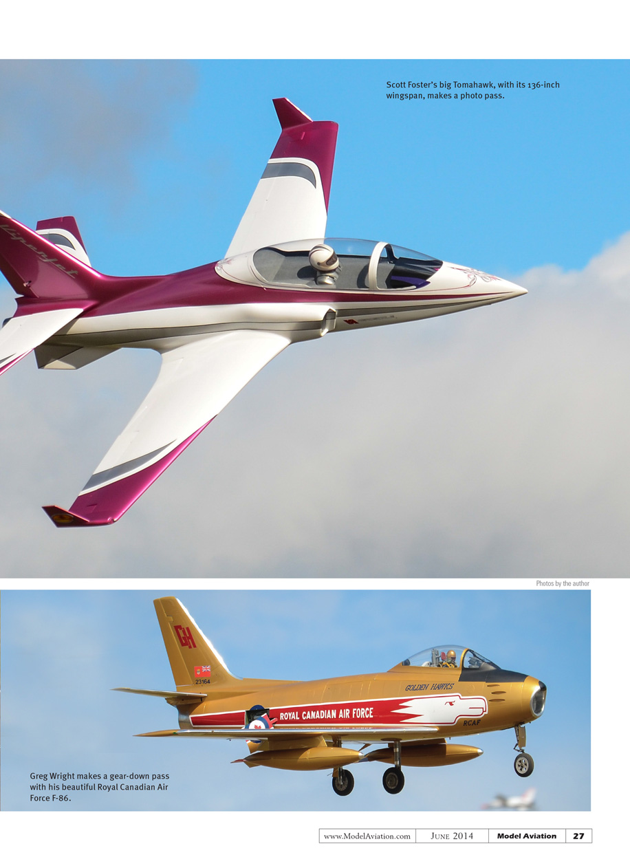 For those who like to see propellers turning on the front of an airplane, Boli Muentes and Andy Kane were tearing up the sky with their turboprop CARF models, both of which included smoke systems. Boli’s 1/4-scale red and white Tucano, painted in the Brazilian Air Force air show scheme, looked great against the blue sky.