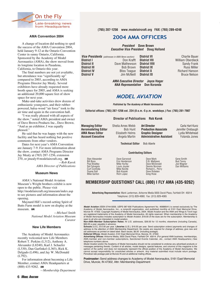 Muncie IN 47302. Copyright Academy of Model Aeronautics, 2004. Model Aviation and the AMA and Wings & Torch logo