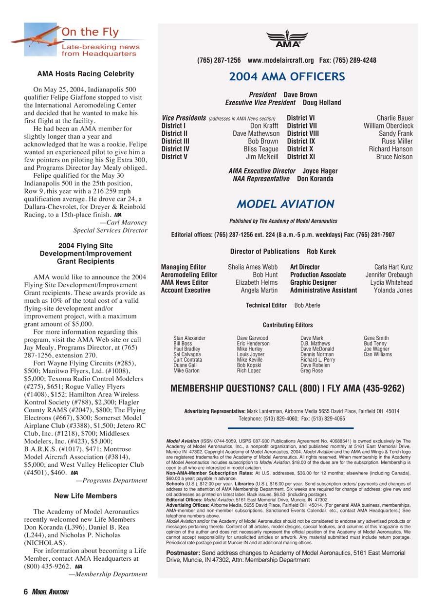Muncie IN 47302. Copyright Academy of Model Aeronautics, 2004. Model Aviation and the AMA and Wings & Torch logo