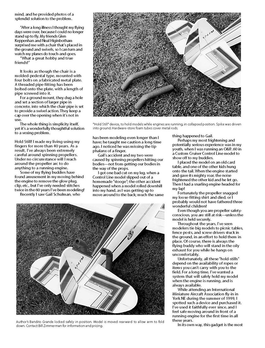“Hold Still” device, to hold models while engines are running, in collapsed position.