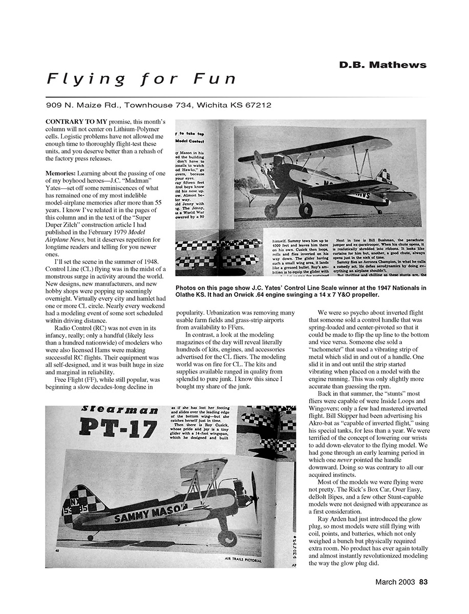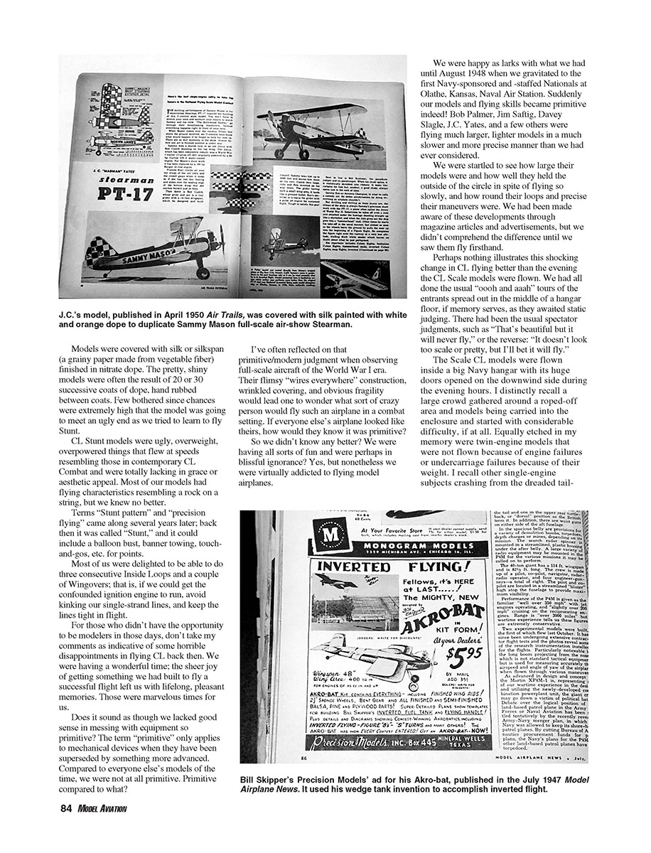 Photos on this page show J.C. Yates’ Control Line Scale winner at the 1947 Nationals in