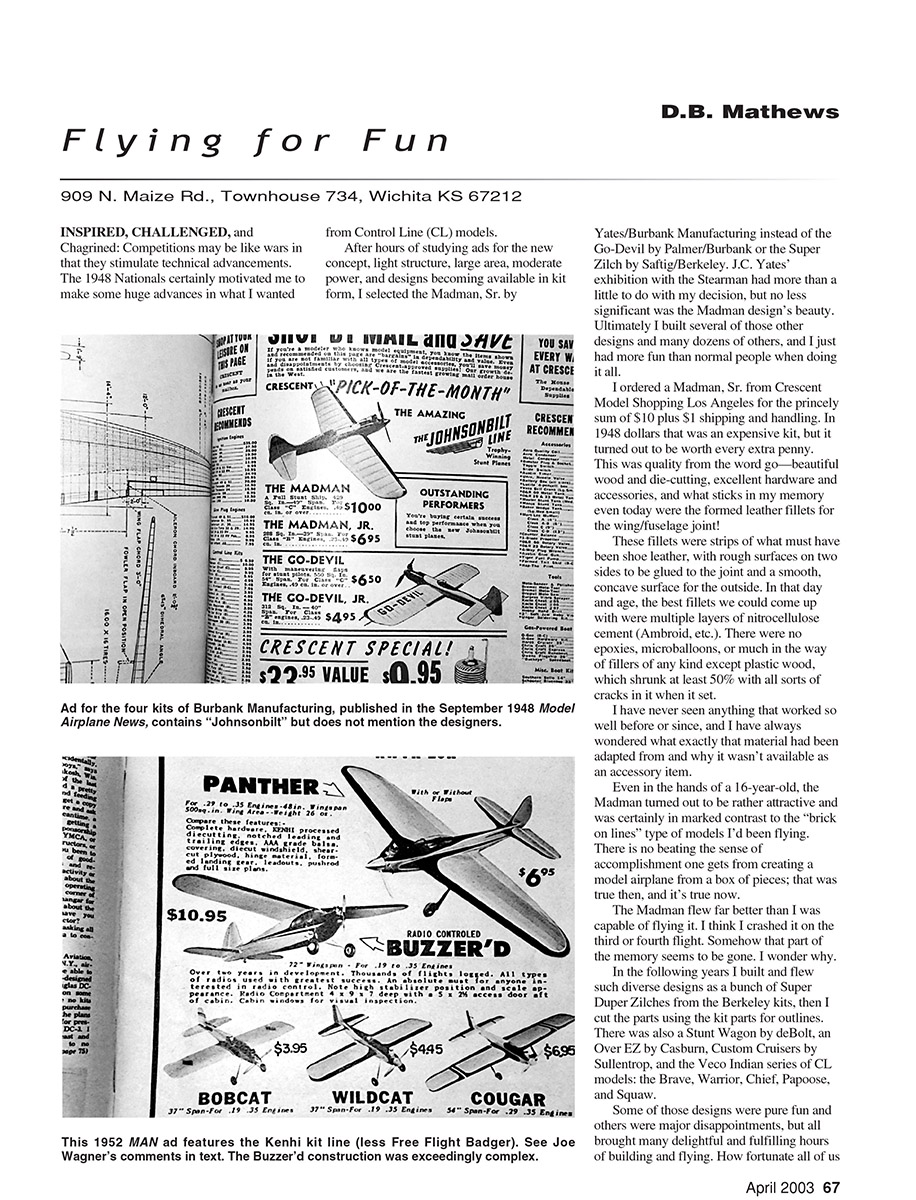 This 1952 MAN ad features the Kenhi kit line (less Free Flight Badger). See Joe