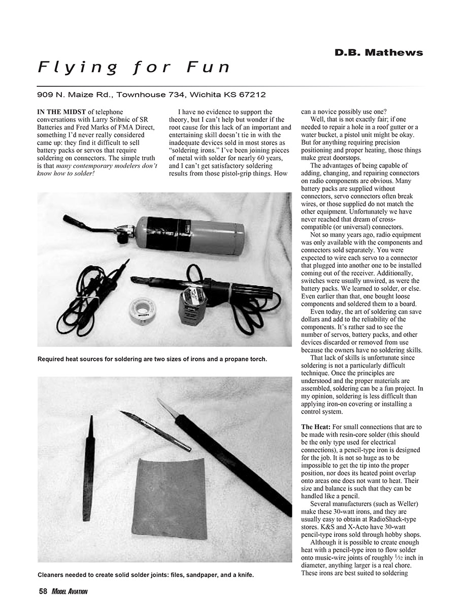 Required heat sources for soldering are two sizes of irons and a propane torch.