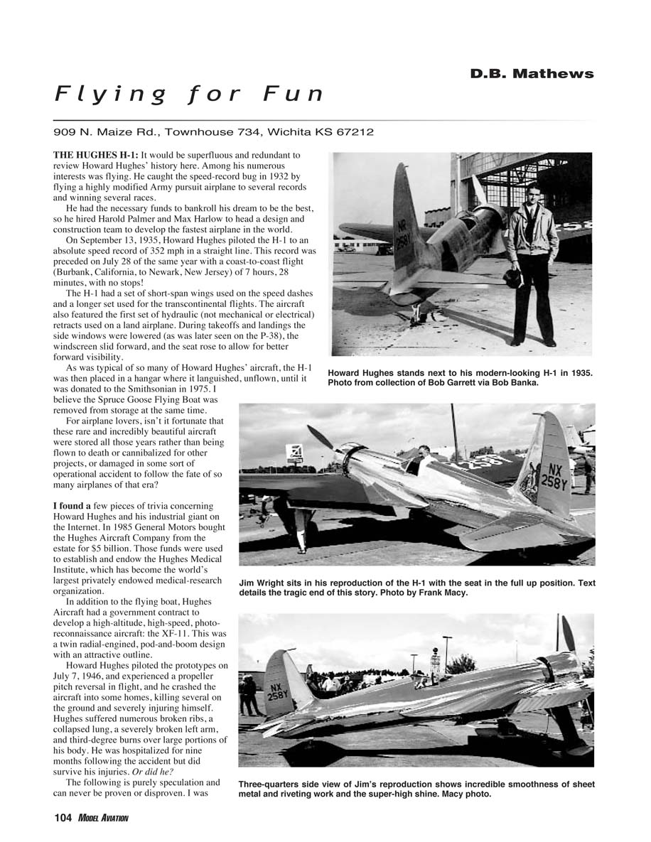 undertaking of reproducing the 1935 Hughes H-1 racer. As you can