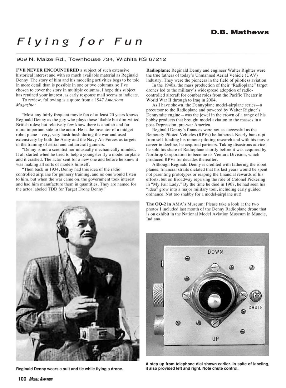 photos I included last month of the Denny Radioplane drone that