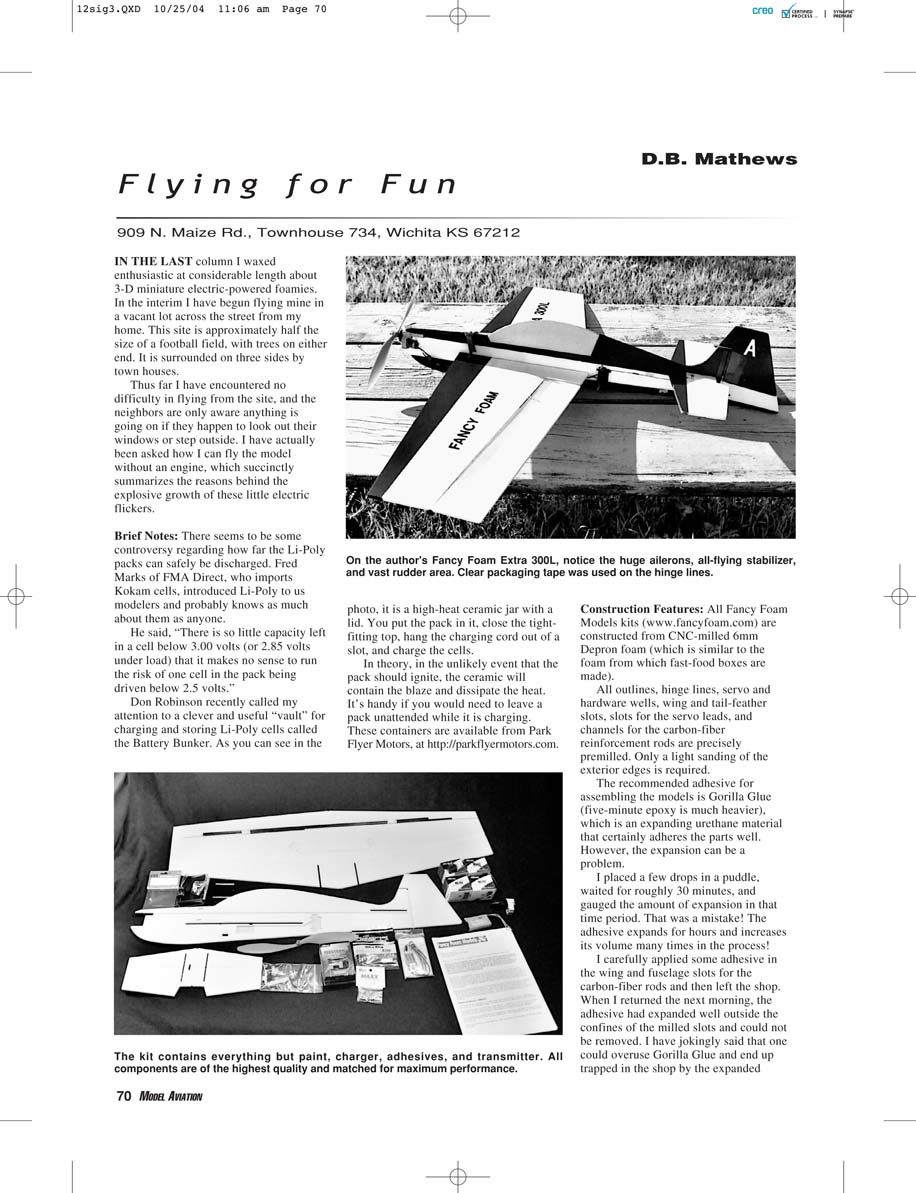 On the author's Fancy Foam Extra 300L, notice the huge ailerons, all-flying stabilizer,