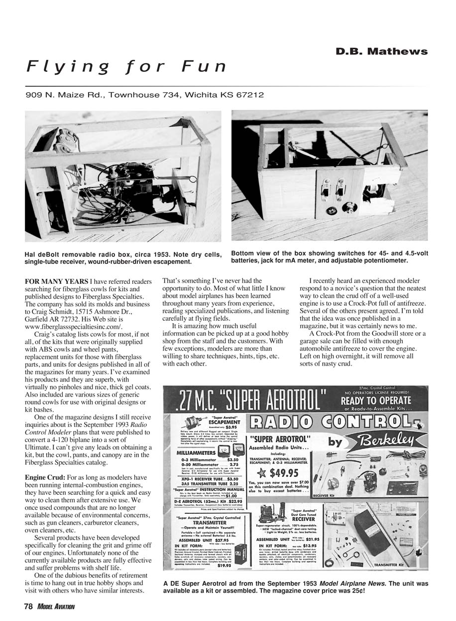 A DE Super Aerotrol ad from the September 1953 Model Airplane News. The unit was