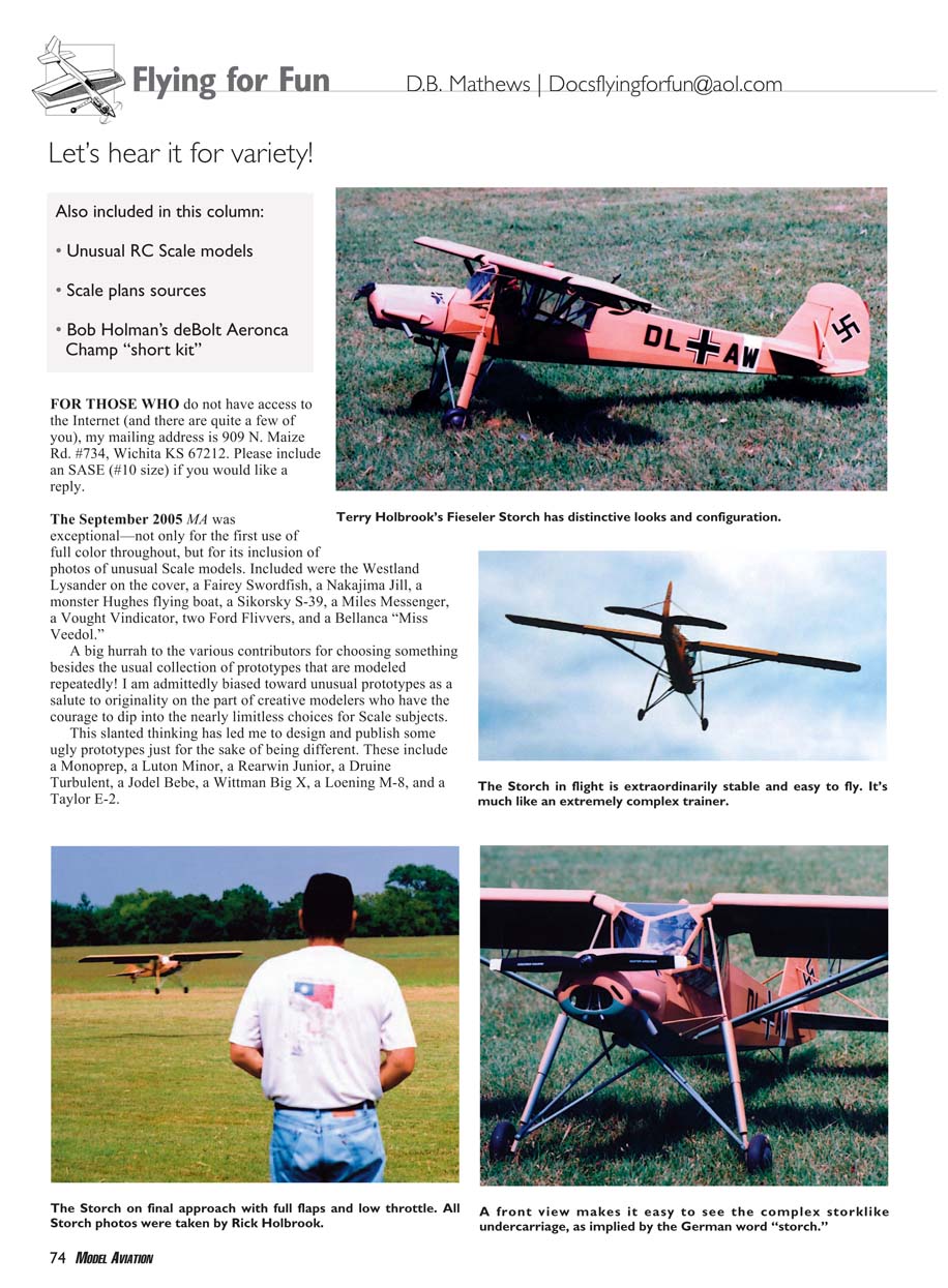 Terry Holbrook’s Fieseler Storch is novel in many ways. It is a