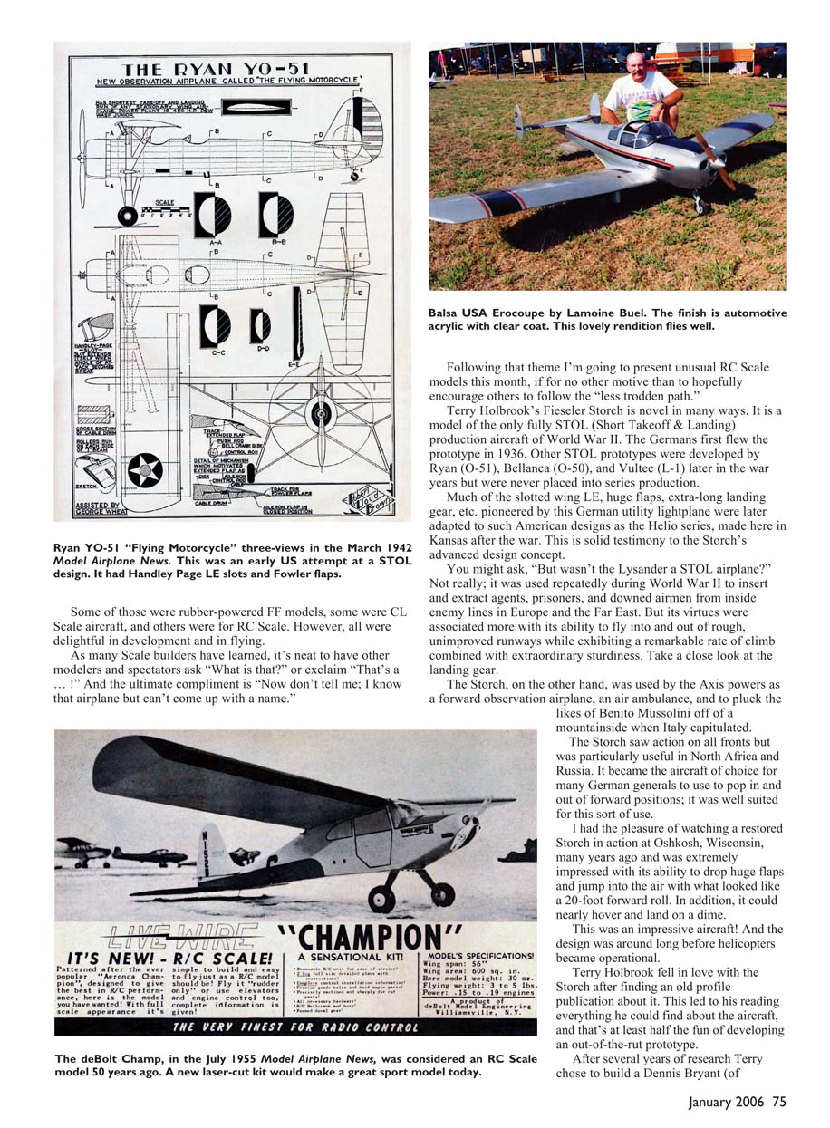 The deBolt Champ, in the July 1955 Model Airplane News, was considered an RC Scale
