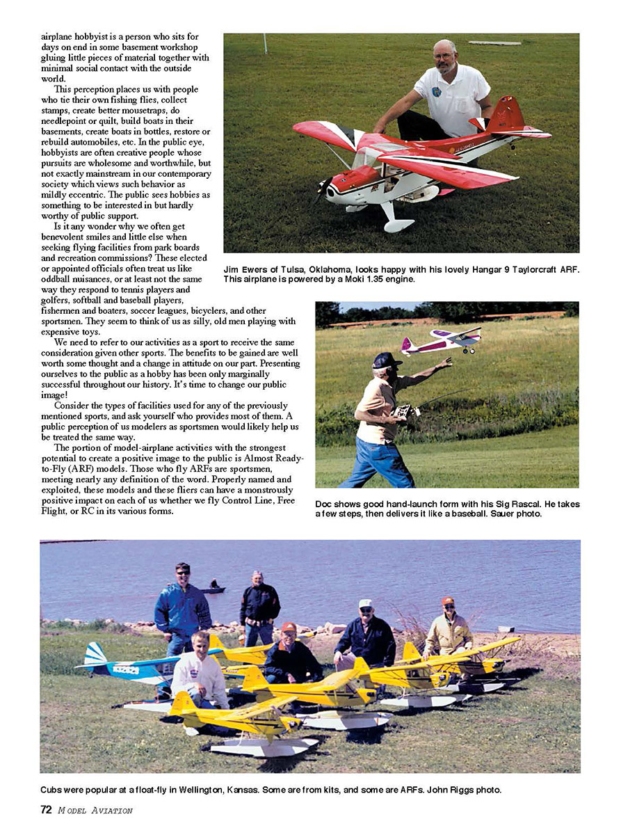 Fly (ARF) models. Those who fly ARFs are sportsmen,