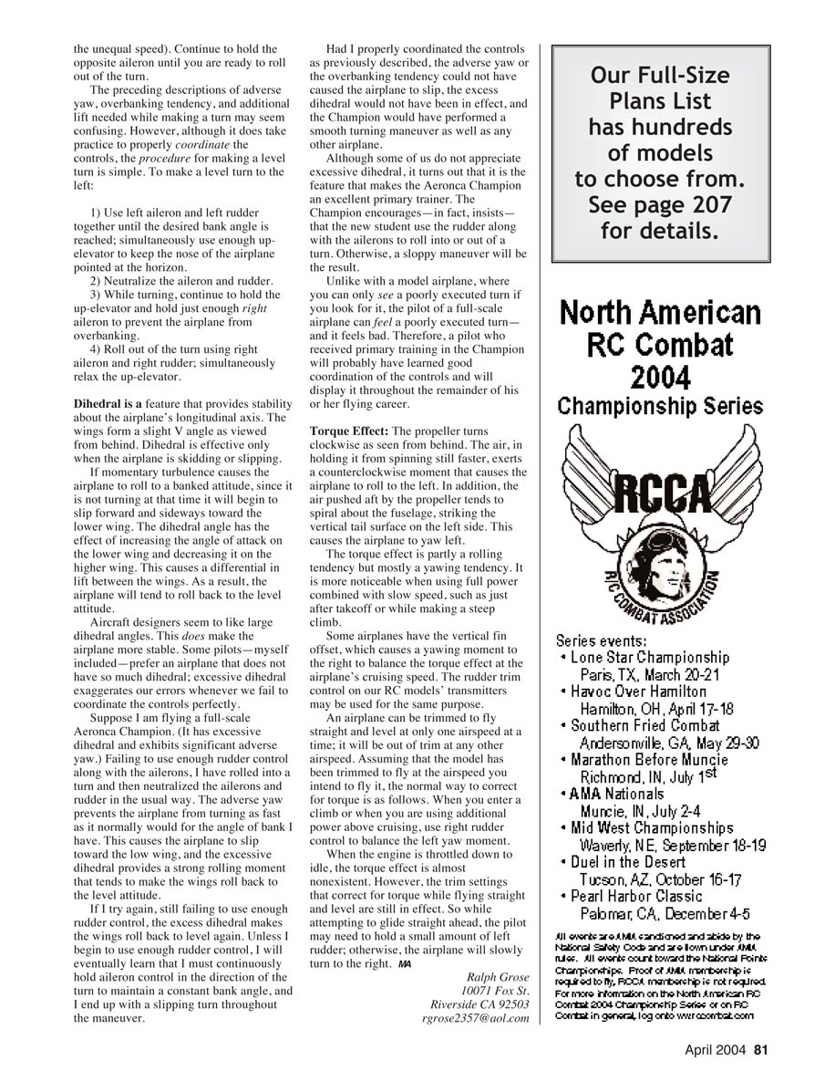 stamped, pre-addressed #10 business-size letter envelope) Model Aviation, 5161 E.