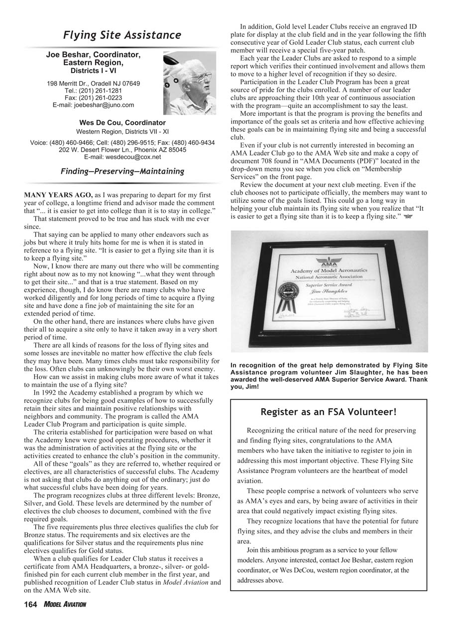 published recognition of Leader Club status in Model Aviation and